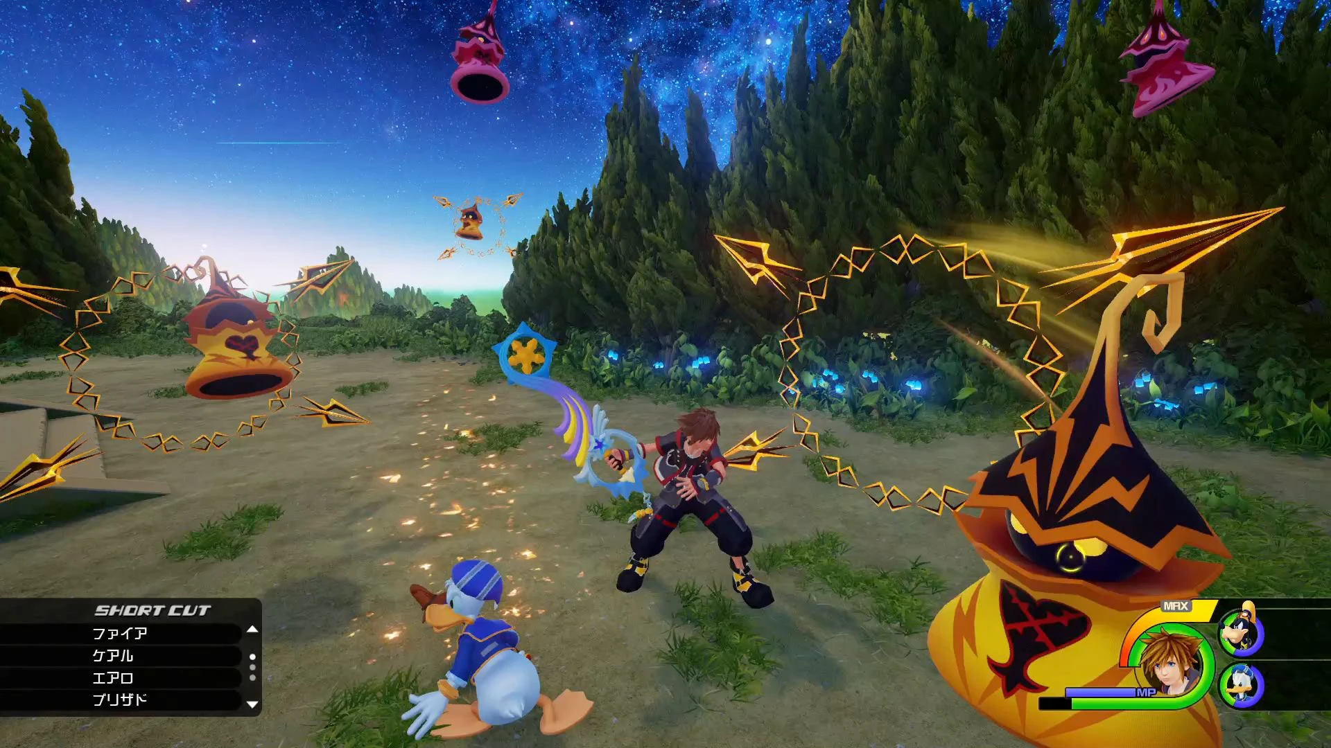 One of the games with the most complex, weirdest, and most difficult to understand plot, is not an exaggerated statement to explain Square Enix - Kingdom Hearts action games. New gameplay elements include new enemy types, traversal elements such as wall running and jumping, summons, Keyblade transformations, and team-up attacks, which combine Sora, Donald, and Goofy into one attack. Although small that they confirm, but at least enough to make gamers who for years waiting for this new series believe if the closing story of the Keyblade users is true still exist.