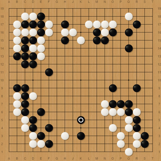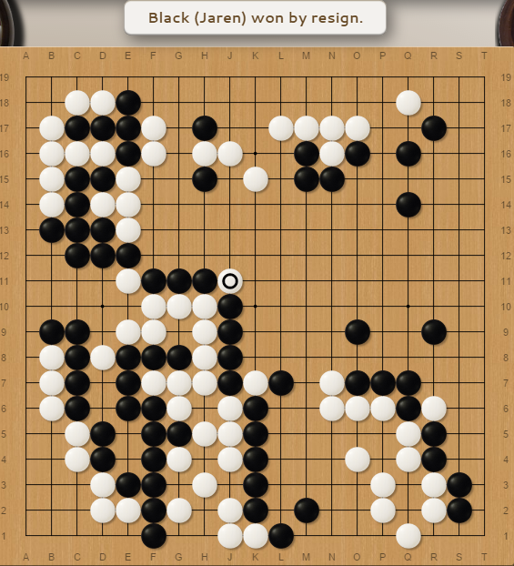 Since he tried to live in a black ocean, it was pretty hard and he didn’t succeed. He resigned after that but I encourage you to take a look if he lived. Look at the big wall I have now near J9, you can see that I nearly have points near M11. So even if he lived, he would have given me a lot.