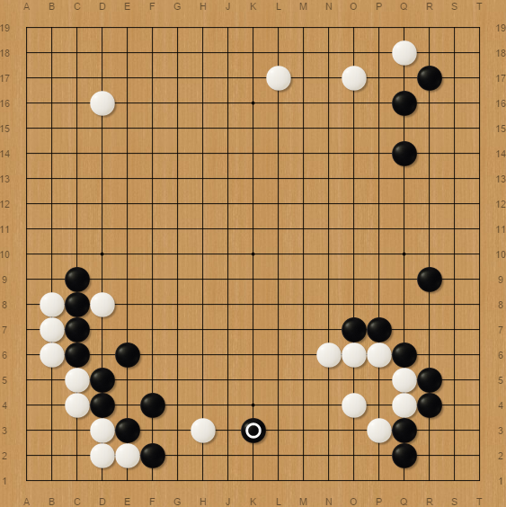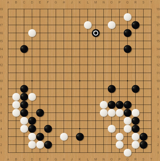 Despite that, he launched the sequence, took two white stones while I made two moves elsewhere in the board, C14 then M16. It was a really great exchange for black because white gained about 6 points against two big moves.