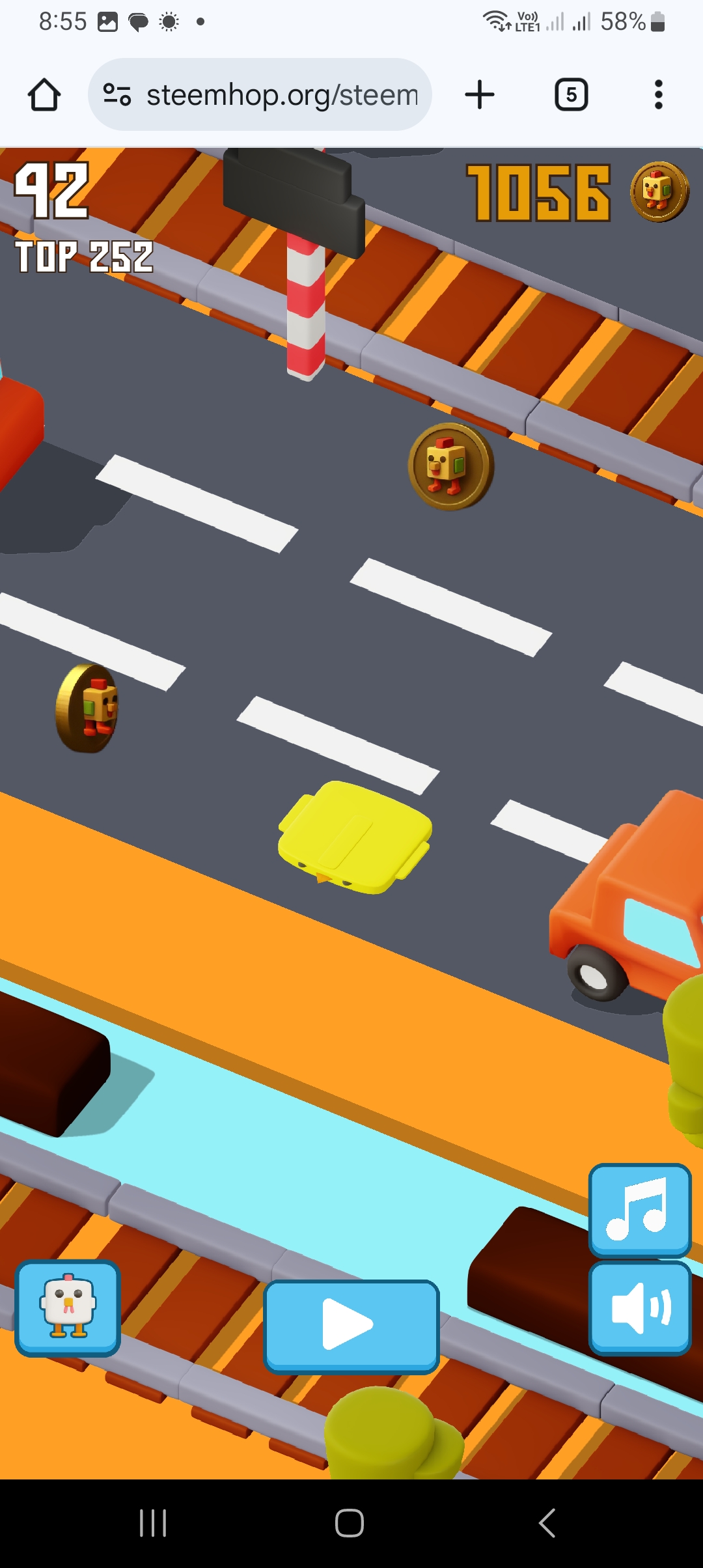 Then I clicked on the play button to play the game. After clicking on play, I continued the game with a chicken for a while. At some point, the chicken fell into the water. At some point, it was crushed under a car. In this way, I finished a few limits and tried to get more points in each limit. After finishing a few limits in this game, I clicked back. After clicking back, I saw that I had finished twenty limits and my total points were 28100. After finishing twenty limits, two thousand points were added.