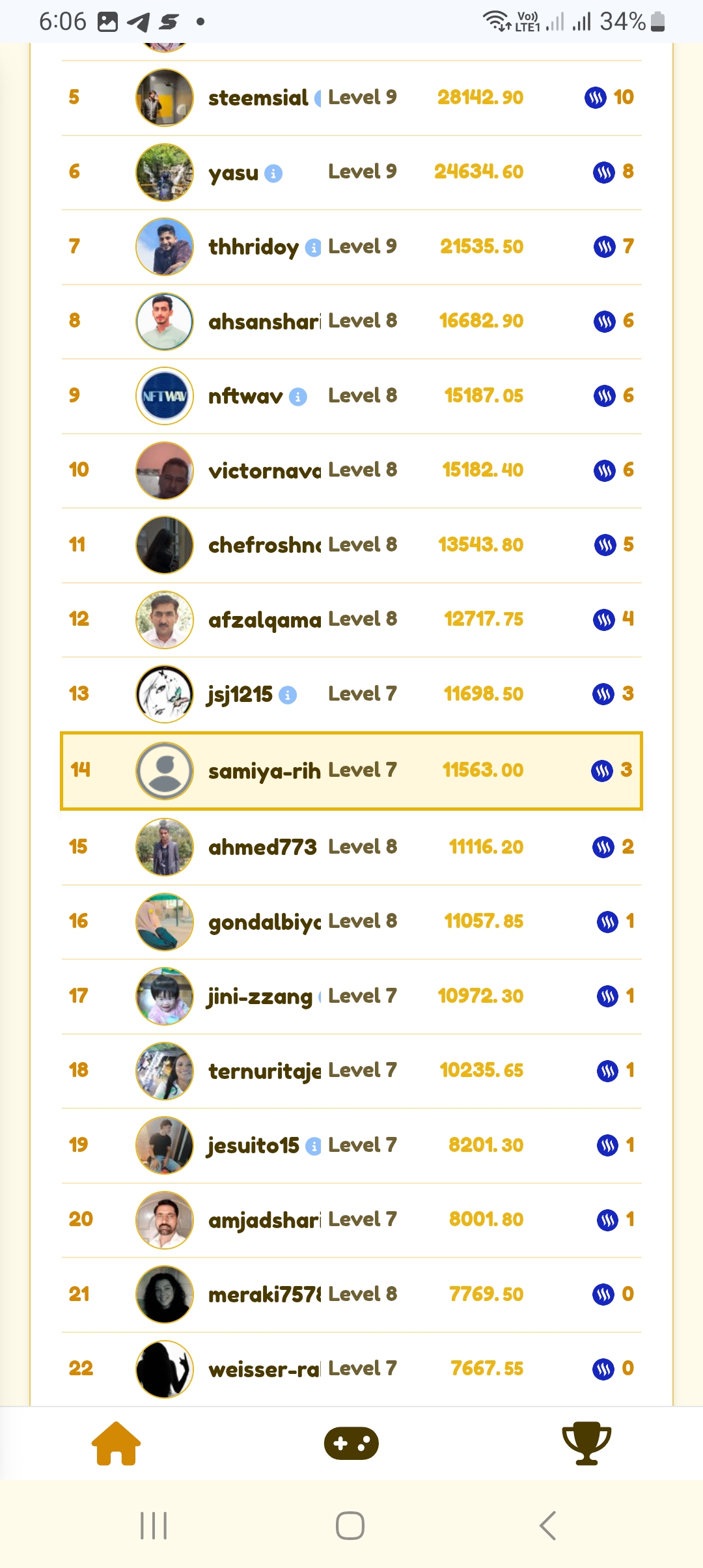 Then I started playing the game. There, step by step, I played the game several times and got out several times. Then I played again. While playing like this, I checked how many points I had. Then I went into Discord. Then I checked the leader board. I saw that many people had played on the leader board. But I was at number 14 with 11,563 points.