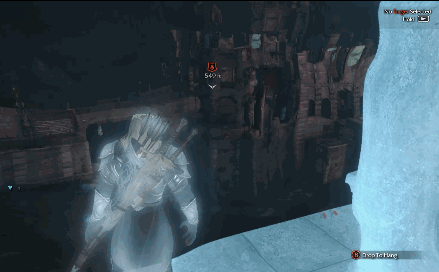 当然,若是想走“刚正面”路线也没问题的,只要你掌握好招架Timing,让敌人失衡。招架也很简单,当有人要攻击你时画面上会出现Y,抓准机会按下去就可以了。这游戏是没有破盾机制的,你完全可以面对数十个普通兽人用一个招架把敌人全弄晕,然后一个一个放斩杀技(Y键+B键)。