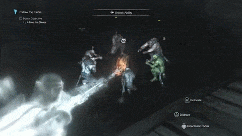 这游戏简单来说,就像是中土世界版的刺客信条。 育碧(Ubisoft)的眼神犀利了起来。 爬塔开地图,要把该区域的首领引出来,就要先把该区域的精英兽人解决掉。这些精英兽人随著危险程度提高,他们城塞中的守卫也就越多。