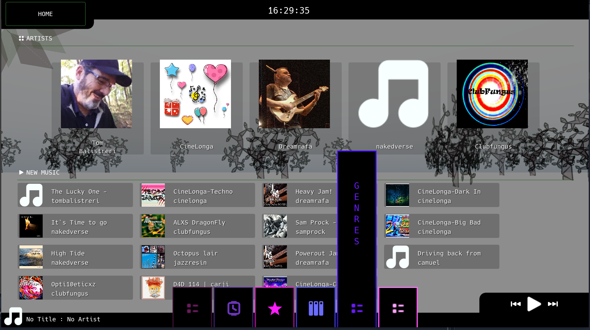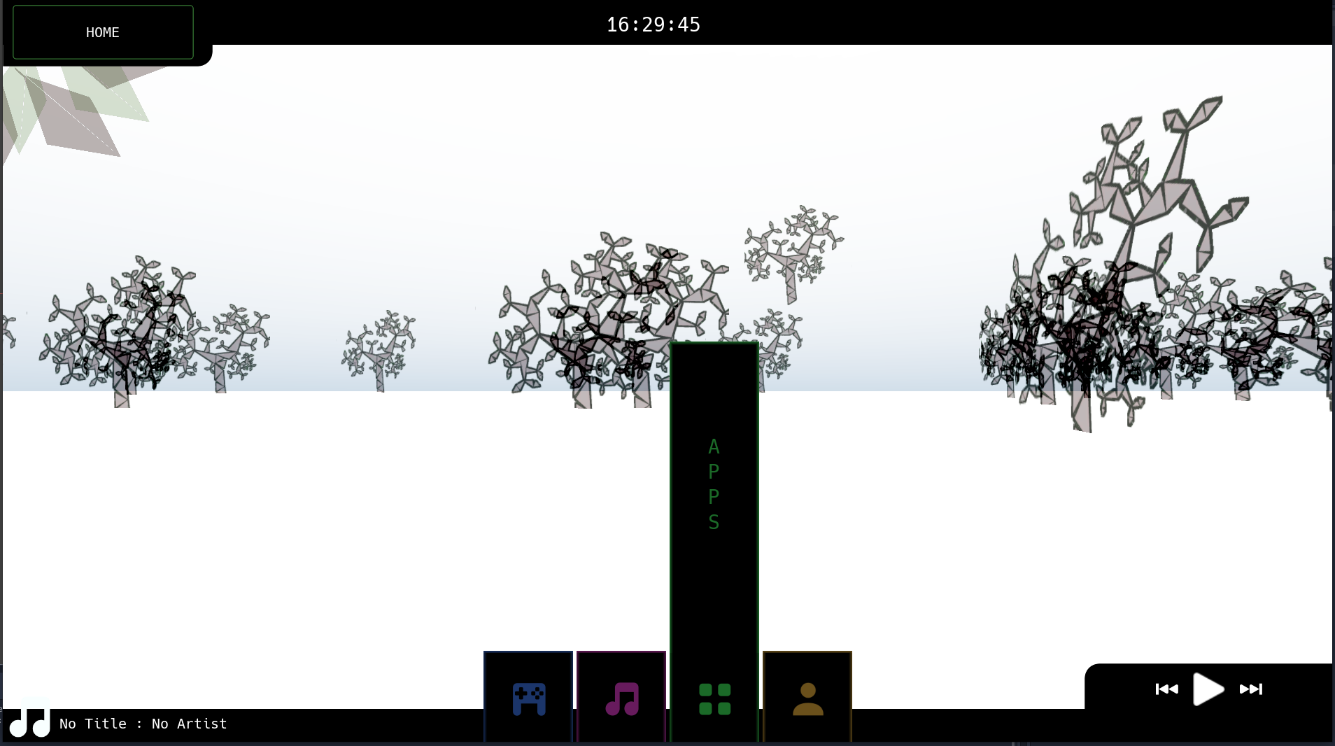 Though the standard Desktop version will be the standard way to interface with Thicket (you can find images of that version in earlier posts) the Console or "Big Screen" mode is targeted for devices and TV's. As you can see from the images below I am trying to keep as many of the aspects of the desktop mode with more touch friendly or controller friendly interface options.