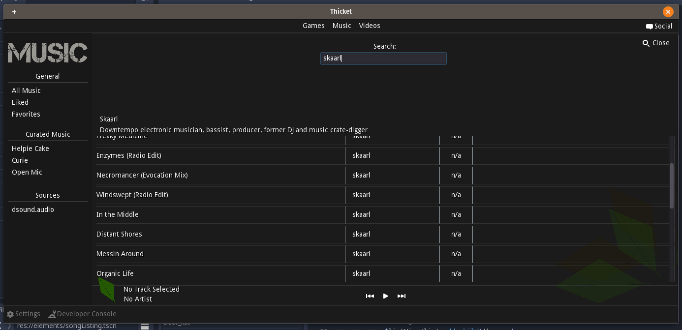 Note: There is a slight lag when the search is first run as its looking for new tracks. I hope to hide that behind some sort of animation when the project is more stable.