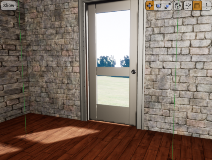 Now I need to open the door when I get near it. I mentioned in my last log that I used something called 'Trigger Volume' and that is the square green thingy in the picture above. So it is fairly simple to use: I want to make it so if the player stands in the green square (the trigger volume) - open the door. The code is also simple becuase the trigger volume has a function called IsOverlappingActor, so I give the function the player and open the door with the code I showed before.