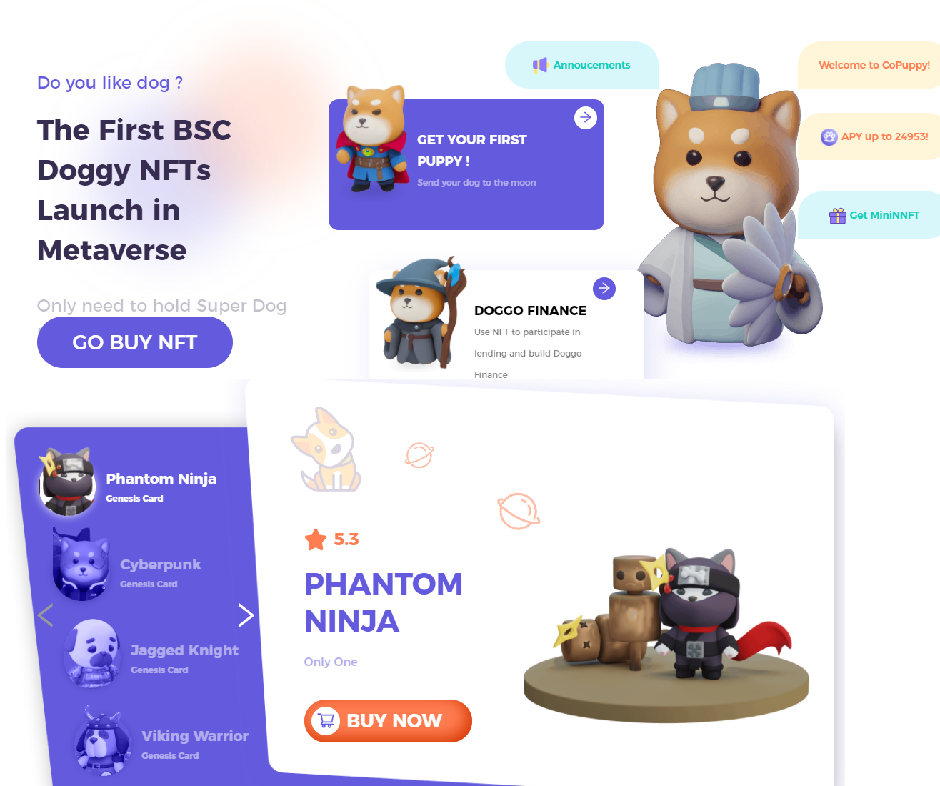 CoPuppy - is an NFT + GameFi project with various innovative features