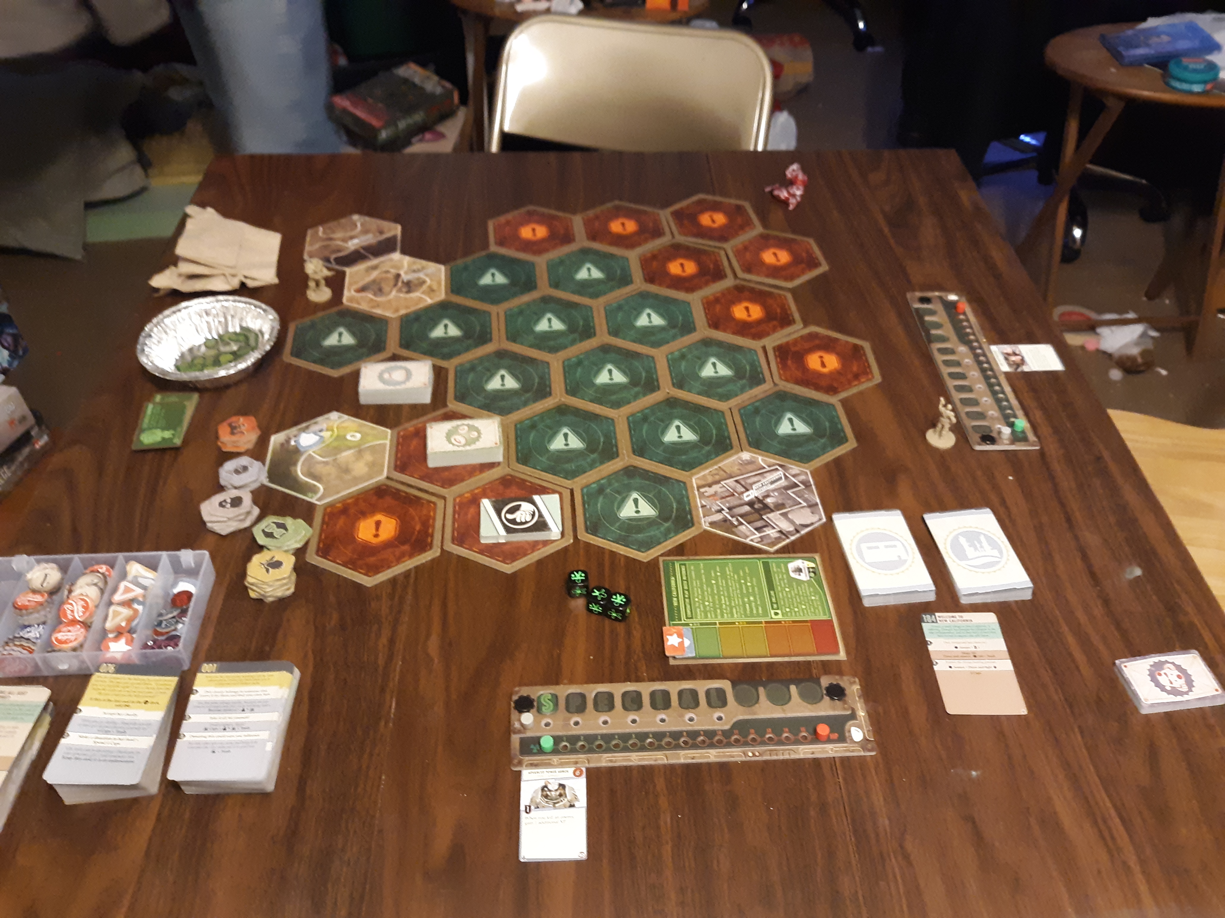 Another issue with the game is the rule book is complicated when you get going. It took me a lot of plays before I got the hang of the different nuances of the rules. When certain things trigger was another big thing. The game didn’t get a lot of play when it was just the base game. Folks I played with just weren’t interested in the competitive modes available. The New California expansion gave us a single cooperative mode which helped to bring the game to the table more often.