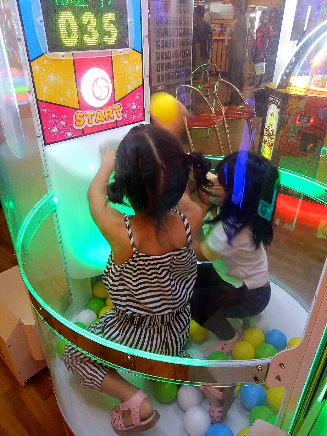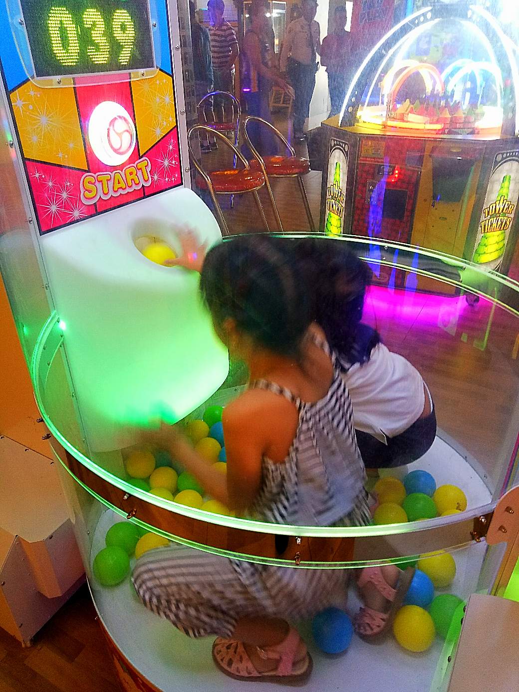 Easy way to earn ticket is to play this game machine. You just need to insert the ball inside the hole within 50 sec.
