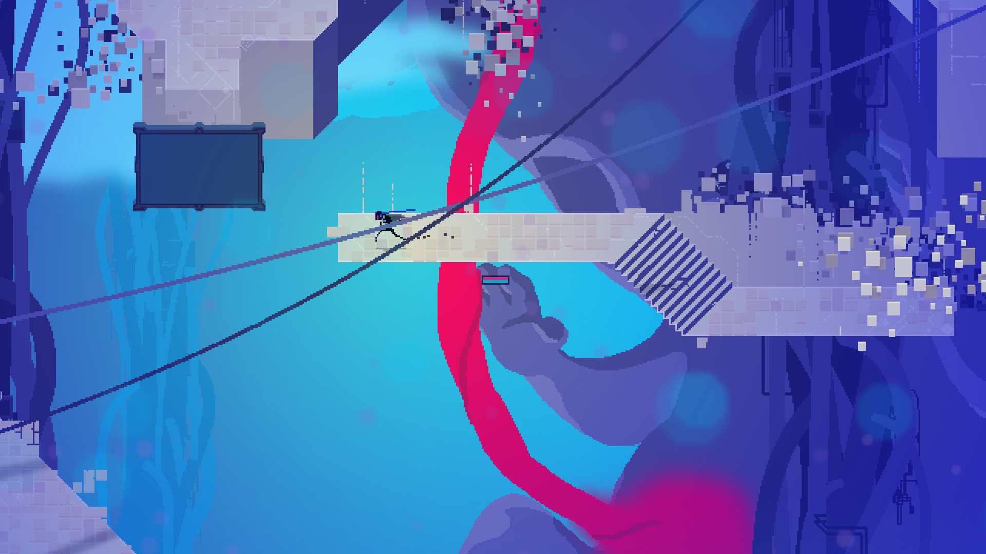 So, Resolutiion is a retro inspired action-adventure, set in a future not too unlike ours: the Infinite Empire is at war with the Tribes, that protect the mysterious Cradles. You’re playing Valor, an old assassin tasked to escort the AI Alibii into enemy territory.