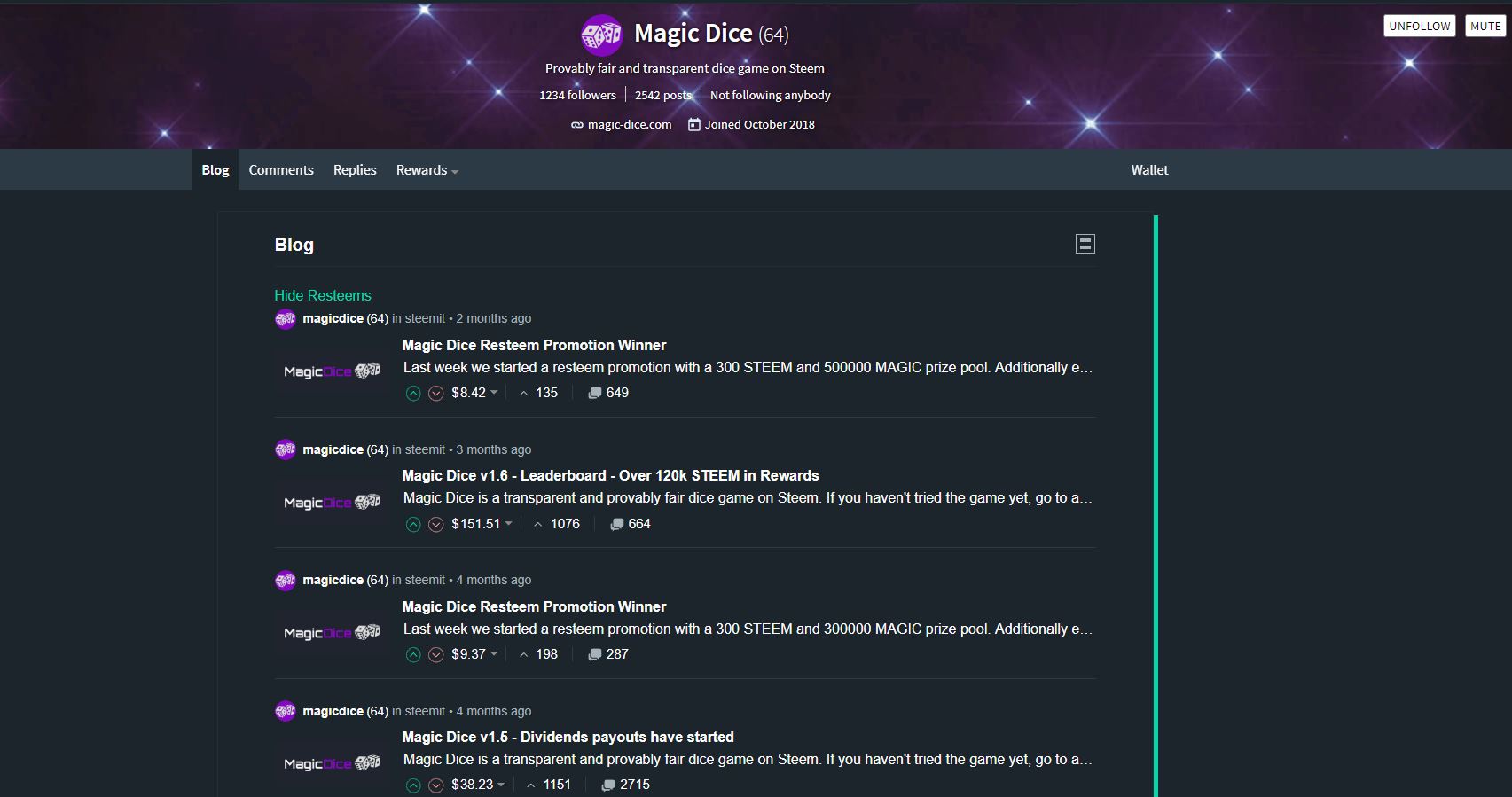 One last thing on news is MoonSteem. I wrote about these fellows last time. Sadly, they decided to shut down their website. They mentioned something about transparency and decided to give everyone back their money and dividends. Unlike MagicDice, MoonSteem shut down properly. I heard that depending on where you live, starting a casino online is not permissible.