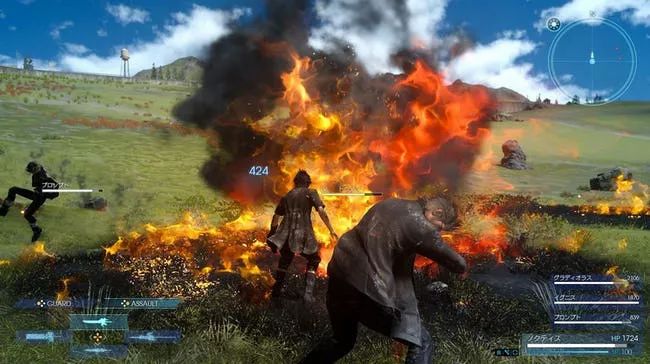 The auto-reaction of your pals (except for Prompto) is to immediatly run up very close to the enemies in melee range so you throw a Fira spell knowing that it will do great damage right at the start aaaaaaaannnd you hit your own troops and kill them too. The effects of the "spell" also lingers after "casting" so when you follow up for a warp sword strike after your initial volley, you also set yourself on fire. While I will admit that this is more realistic than casting with impunity this is a fantasy game and realism be damned!