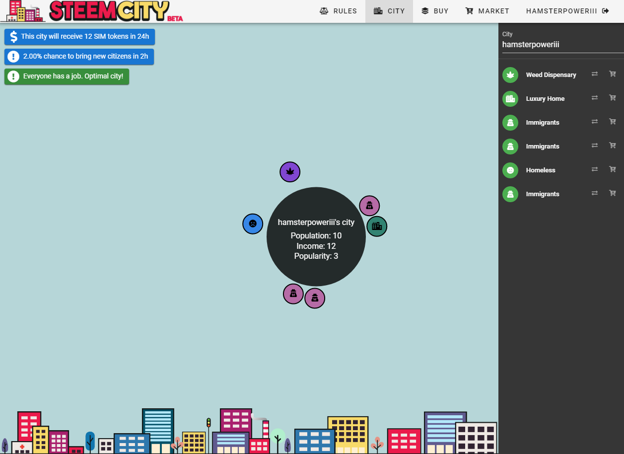 Wie erhält man jetzt Karten ohne sie bei Mitspielern zu kaufen? Entweder unter "BUY". Ein Gebäude kostet 4 Steem oder 800 SIM.
