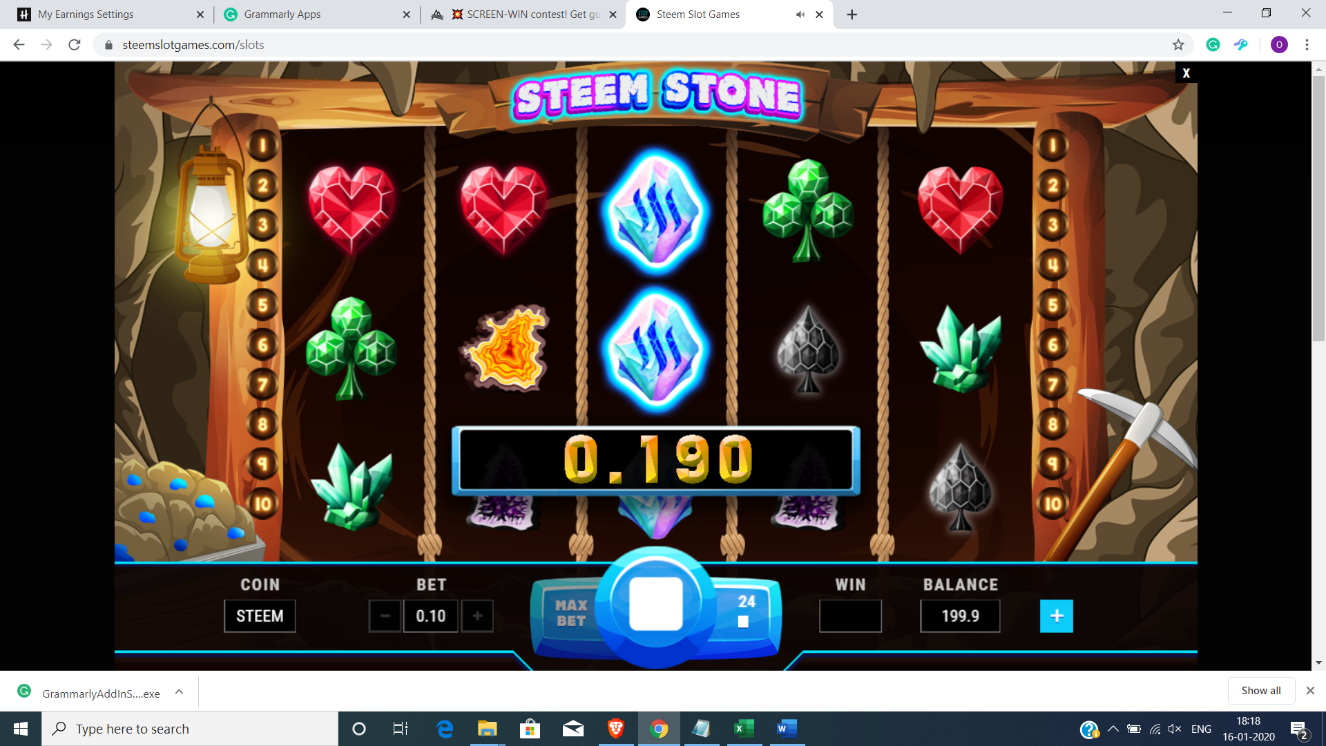 2. Go to SteemSlotGames.com and make some spins in SteemStone (demo version is also allowed).