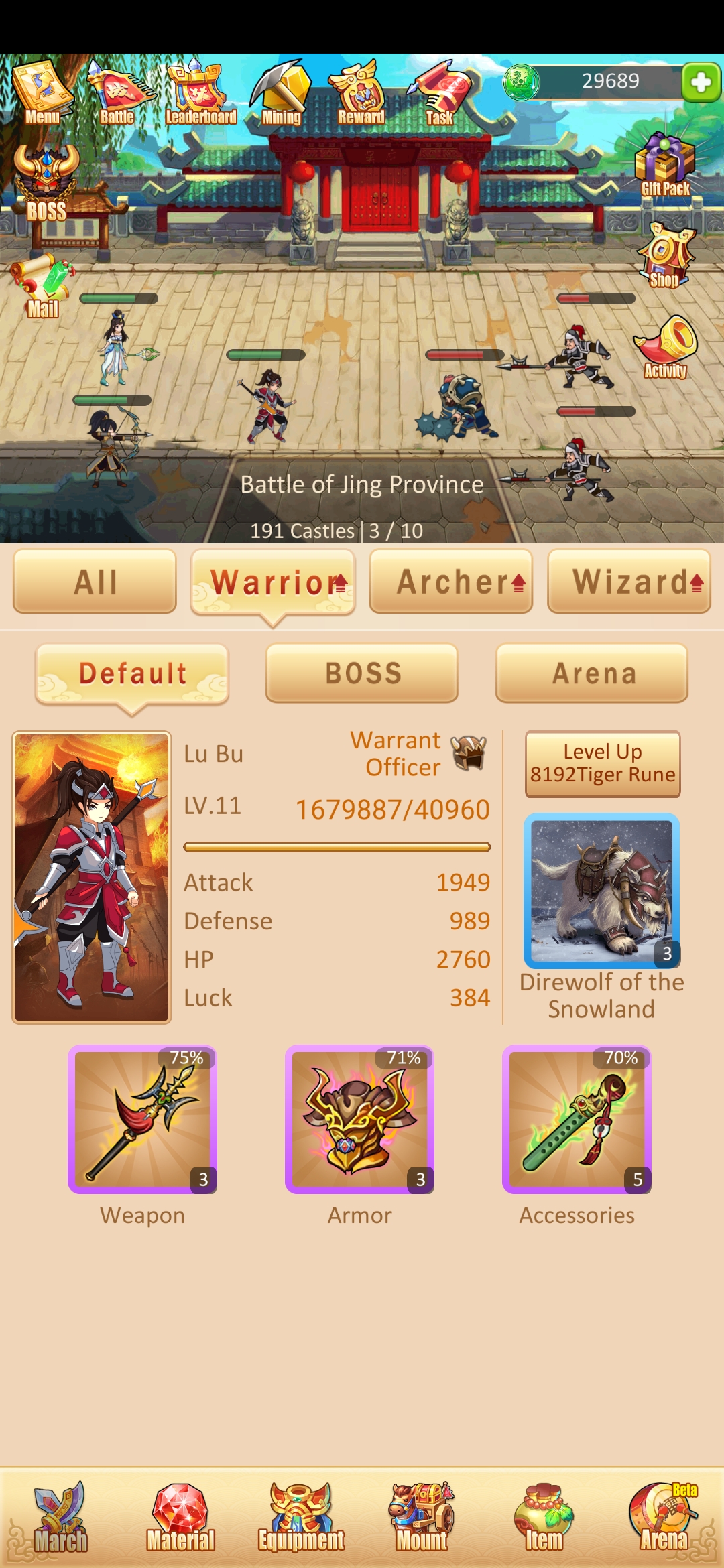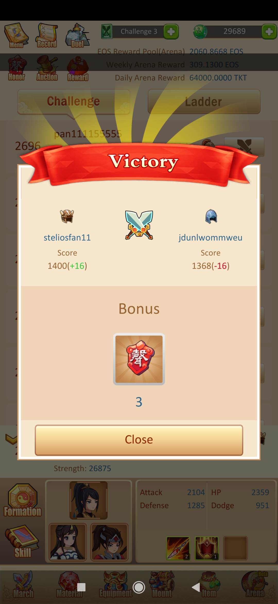 Eos Dynasty is a rpg-pvp game.You have 3 heroes and you can strength them with weapons,armors and accessories.The more power the more castles you destroy and earn more.