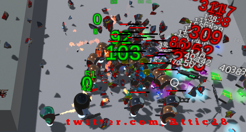 The only enemy in this demo is Burner. He is the first and easiest enemy in game. He is configured to be almost harmless. 4 Burners will spawn every 2 seconds, with a maximum of 200 active at one time. This is just for the demo, spawning will work differently in the full game. For more updates and info on about this game, or for giving us your feedback, find us on Twitter, Facebook, Instagram, and SteemIt. Just search for Attic28.