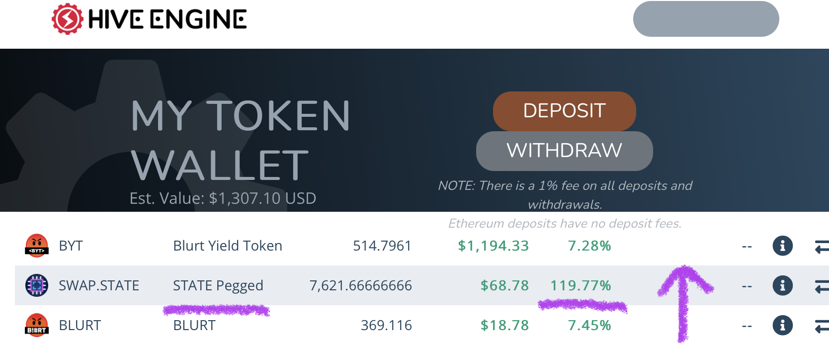 Deposit the desired value of HIVE. Enter the amount you would like to deposit and click “Deposit HIVE.”