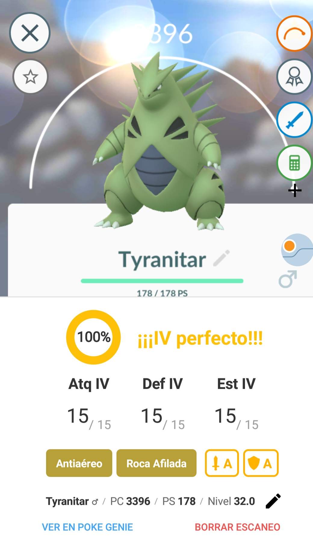 The day was going nice! Around 19 C° also very sunny! 10 minutes before the CD ends, I catched THE BEAST, my best pokemon and probably the best in some months... a lvl 32 100% TYRANITAR! (Disclaimer: I am a noob, lvl 29 Valor Trainer)