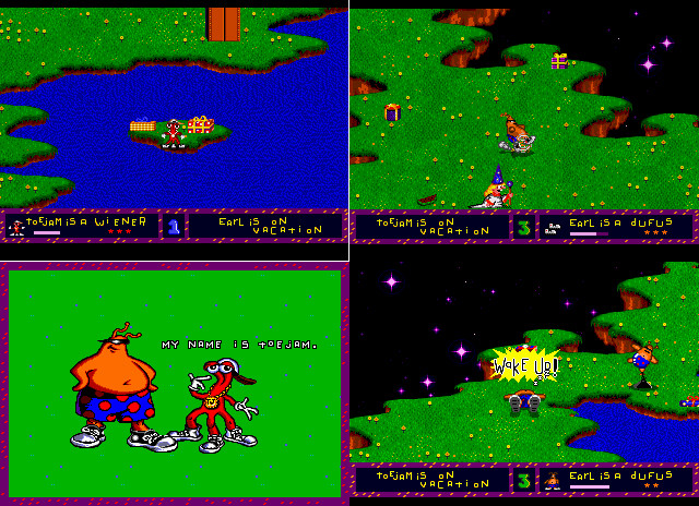 Rogue used basic keyboard letters and symbols to depict randomly generated dungeons. The gameplay did become repetitive and boring to many, but this random content generation method would be used to make some amazing games throughout the years, leading to our current generation where roguelike games are super popular. At the time Rogue was made, the idea of roguelikes was not commonly seen in console games as the limited data size of game cartridges made rogulike game production difficult but not impossible. Toejam and Earl was a rare gem of a roguelike game for Sega Genesis.