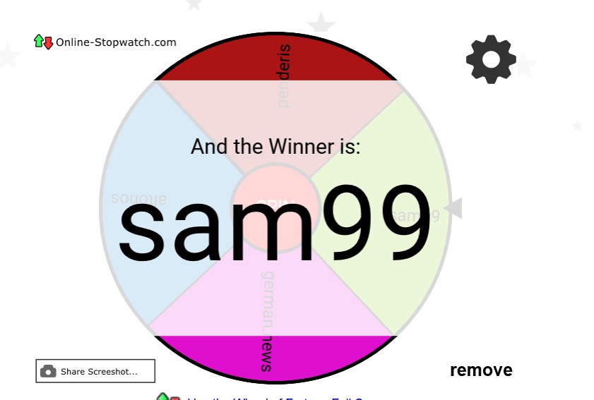 - There is a 50:50 chance to win. For example: If there are 6 valid UpVotes i will spin the wheel of fortune 3 times. Are there 10 valid entrys i will spin it 5 times and so on.