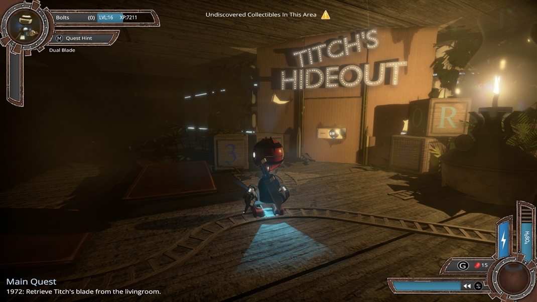 Svého robota si můžete také všemožně vylepšovat a obléci do různých kostýmů. Můžete vypadat jako anděl, čert, kovboj nebo nindža. Dokonce i jako kombinace více stylů a barev. Stačí vám k tomu jen najít v místnostech, ale i venkovních prostorách, ty správné komponenty. Tato složka rozhodně stojí za to. Vylepšujete délku přežití na světle a v podstatě věci, které jen zpříjemňují průběh hry.
