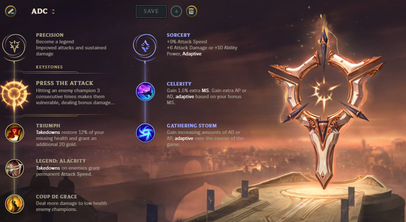 The runes I went this game are currently the most popular ones used on Twitch. I set my primary keystones in the precision category with my secondary keystones set in sorcery. 'Press the attack' was my primary keystone.