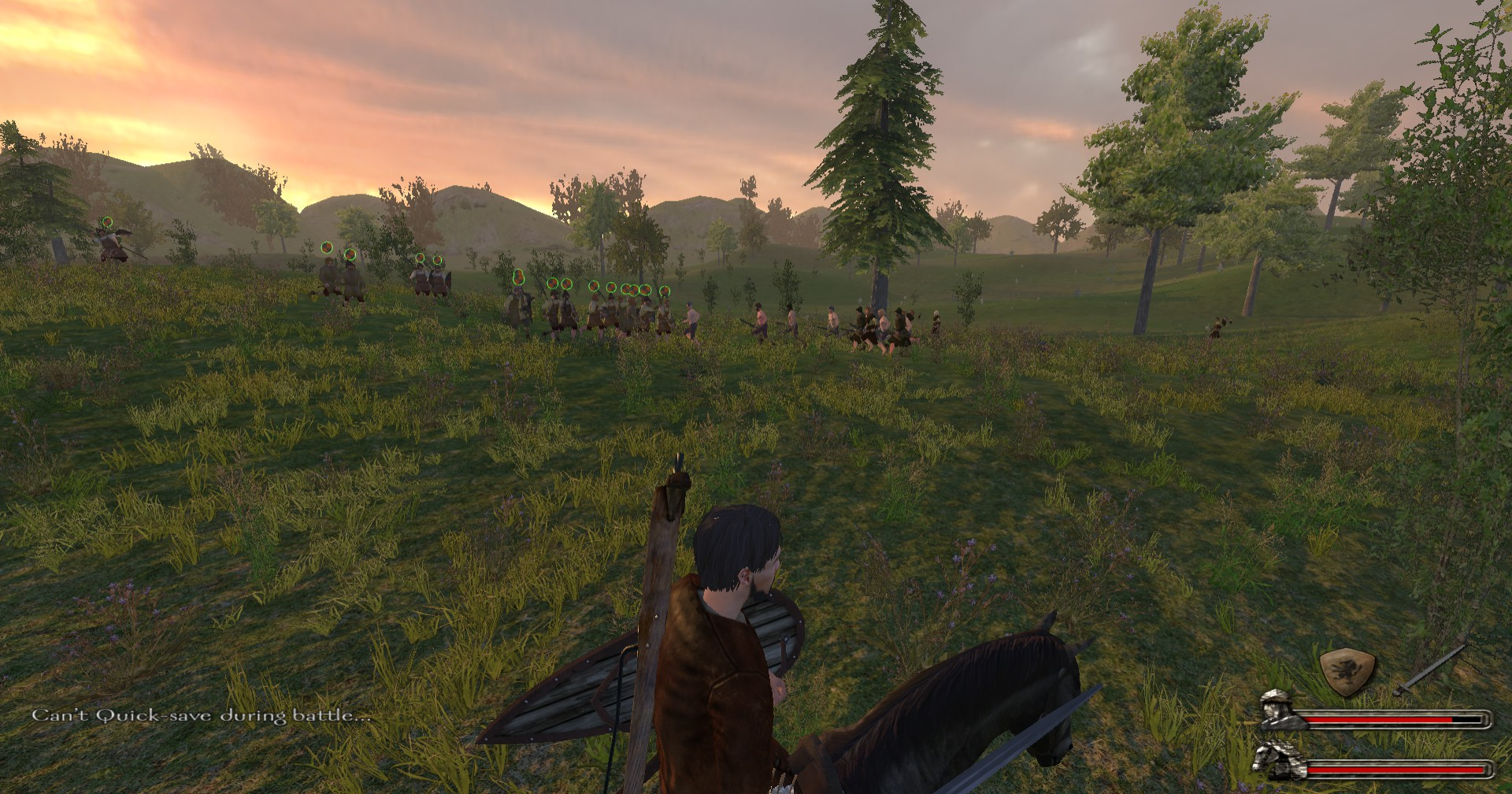 The battle was swift and one-sided. John's war band was a lot stronger than anticipated easily cutting through the ranks of bandits within minutes of contact. The cut-throats quickly routed before trying to retreat off towards the safety of the nearby forests but to no avail, as John mercilessly ran down the bandits as they ran atop his mighty steed. No enemy would survive.