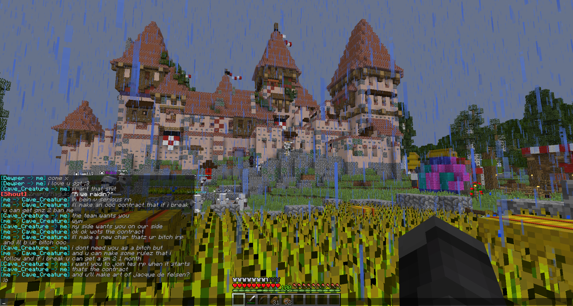 What I personally find so cool about the server though, is the scale of it all. In-game factions can span anywhere from a few handful of players in a guild to hundreds in a kingdom. I've been in fights with a few dozen players and fights with nearly five-hundred. I found it very hard to find any other game or server, especially on Minecraft, that provides any sort of PvP gameplay on that scale. Trust me when I say that it's such a satisfying feeling playing a part in something of such grand scale, I look at how cool this example is here recorded on the server;