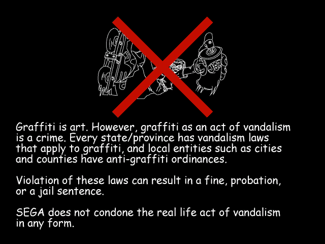 This game comes with a disclaimer about graffiti that shows up every time you boot it.