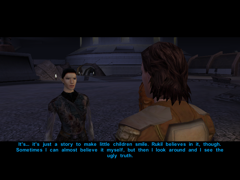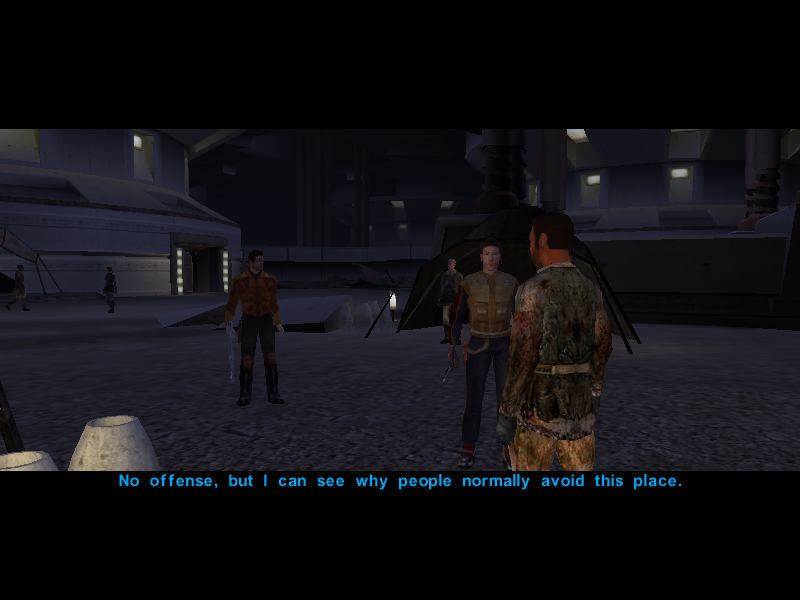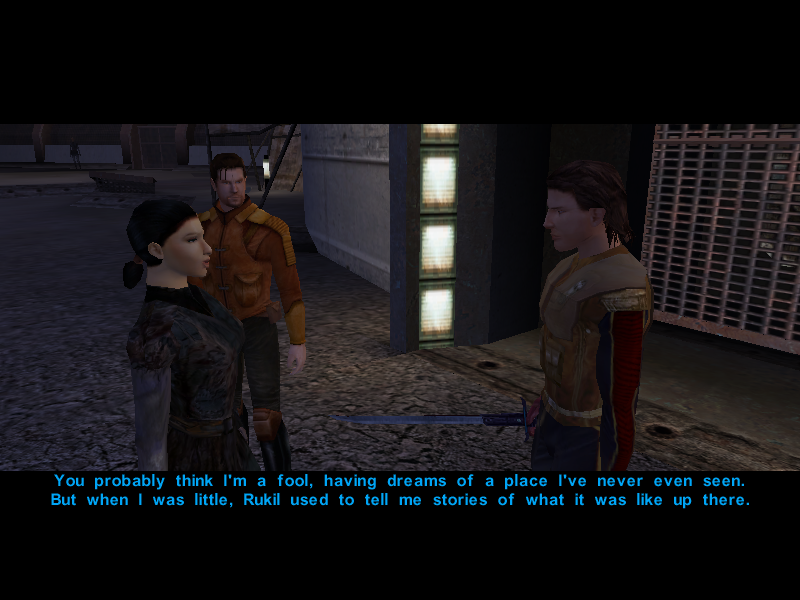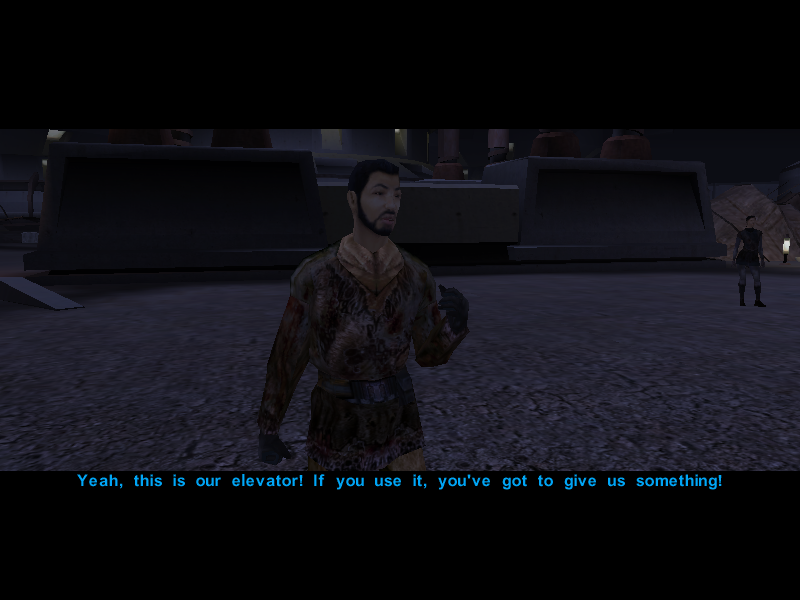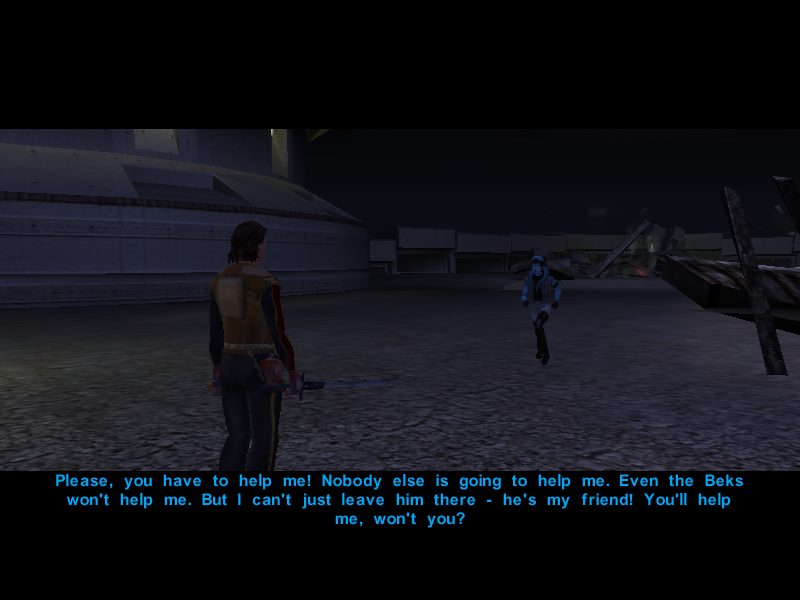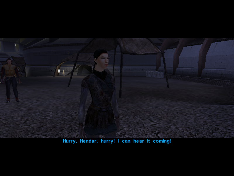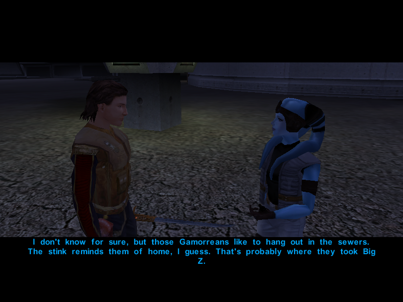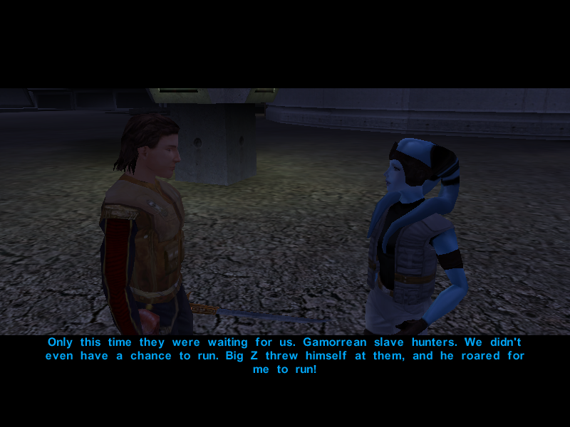 Their search is almost over as Gadon Thek, leader of the Hidden Beks, informs them that Bastila has been taken hostage by the Black Vulkars and offers to help them rescue her if they manage to win the annual swoop gang race. Or something like that.