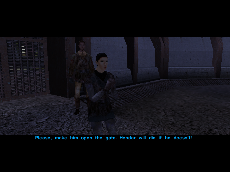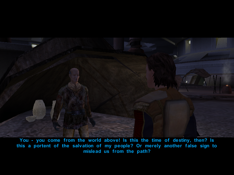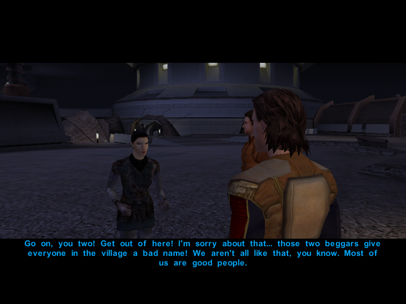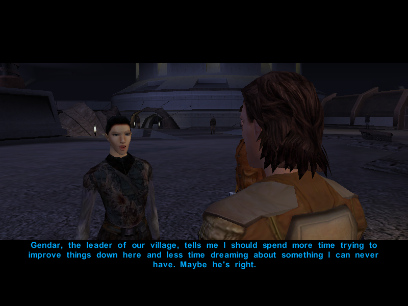 Avren and Carth then proceed to look for the village leader, Gendar, in the hopes that he knows where Mission went.