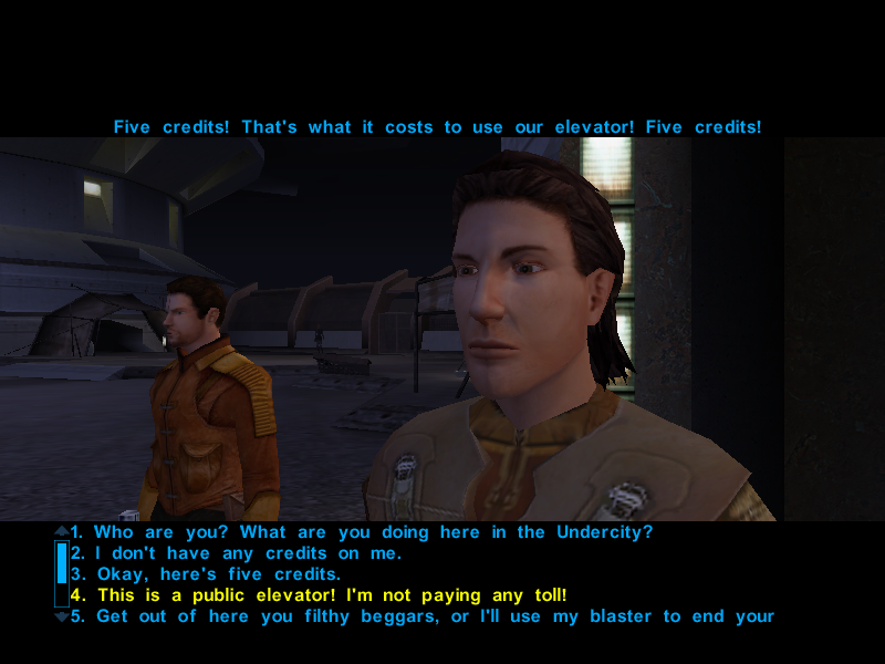 They then proceed to tell us that it costs 5 credits to use the elevator.