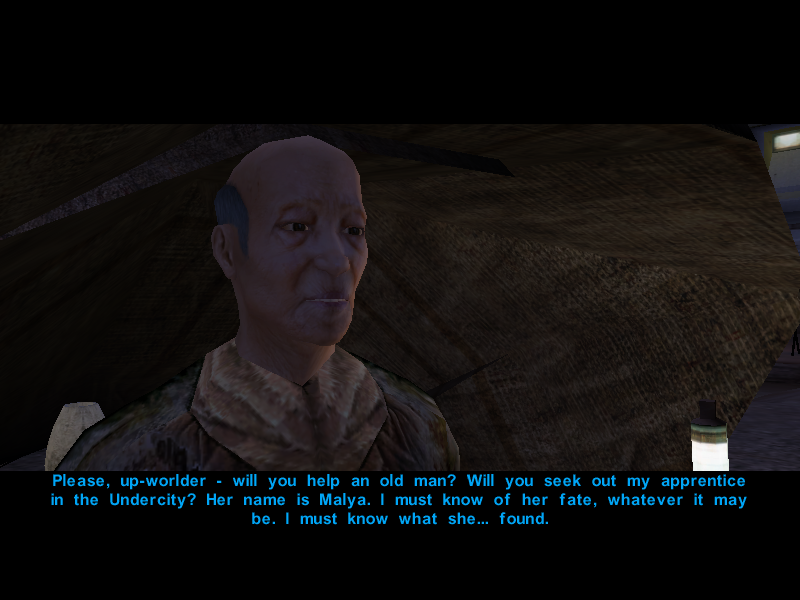 "My name is Shaleena... you're from the up-world, aren't you? I've... I've never seen it. I was born here in the Undercity. Is it as nice as they say up there?"