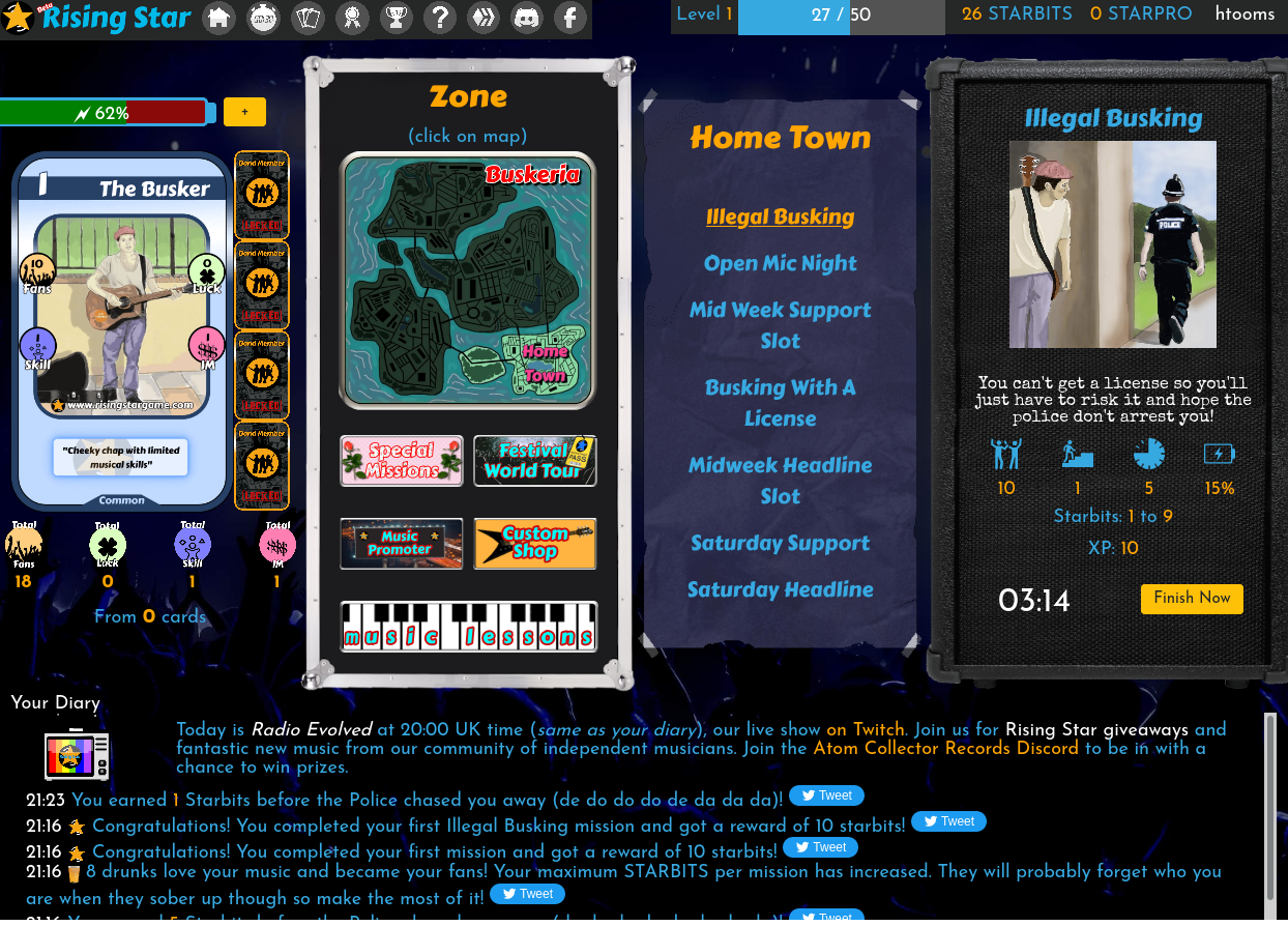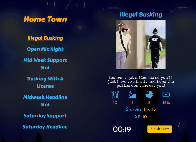 That's it for now. I learned how to navigate the game, got three NFTs and am on my way to level two. I have to evade some police and sing for my supper at this point. That is called Illegal Busking.