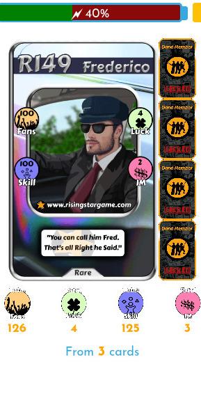 At this point I looked at the cards and applied Frederico to work for me on my mission. He is worth about nine dollars so I am up five buck on my first pack. He has fans and a certain level of luck to add to my mission success. If I earn 15 starbits, he will turn it into 45 with his money multiplier!