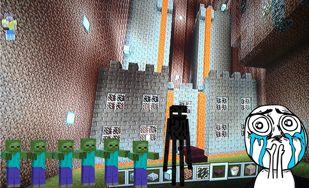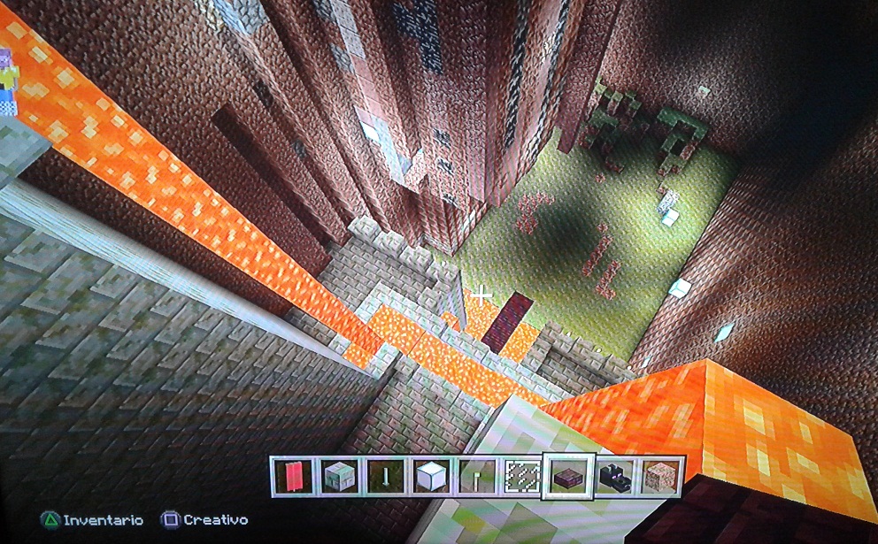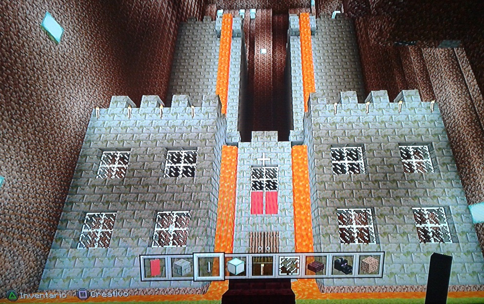 Después de terminar las torres, le coloque un río de lava que cae en la parte de frente del castillo y luego en una fosa al frente para protegernos de los zombies y los enderman, uyyyy.