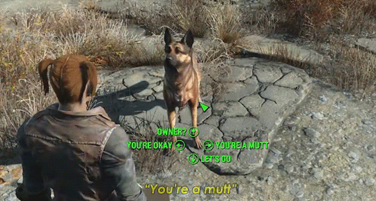 The writing in this game is just pretty bad. Apart from being cliche, predictable, convoluted, and not really giving you an actual reason to care, it limits your role playing potential. In previous Fallout games, you were in complete control of your character's personality, traits, opinions, etc. In Fallout 4, you are a semi-goody two shoes no matter what you do. This is a side effect of both the voiced protagonist and the 4 dialog option. The game will direct your character on rails the entire game. The game lies to you by telling you you are free. Sure, you're free to go wherever, and do whatever you want, but you will complete quests the way Bethesda wants you to, or you won't complete them at all. In New Vegas, you could finish and complete quests in literally any way you want, and the game would be ready for it. Not in Fallout 4. You don't get to role play as the player character and make your own meaningful decisions. You're Bethesda's sole survivor and you will do as you are told.