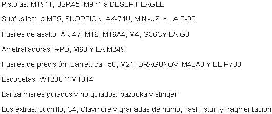 The game possessed a series of very emblematic weapons such as the M16, AK-47, MP5, P90 among others which I will put in a list at the end of the post, I remember that was the Perk of overkill which consisted that your soldier could have 2 main weapons and the variety that Granted the game I chose the AK-47 and the M16 with which I got a good streaks.