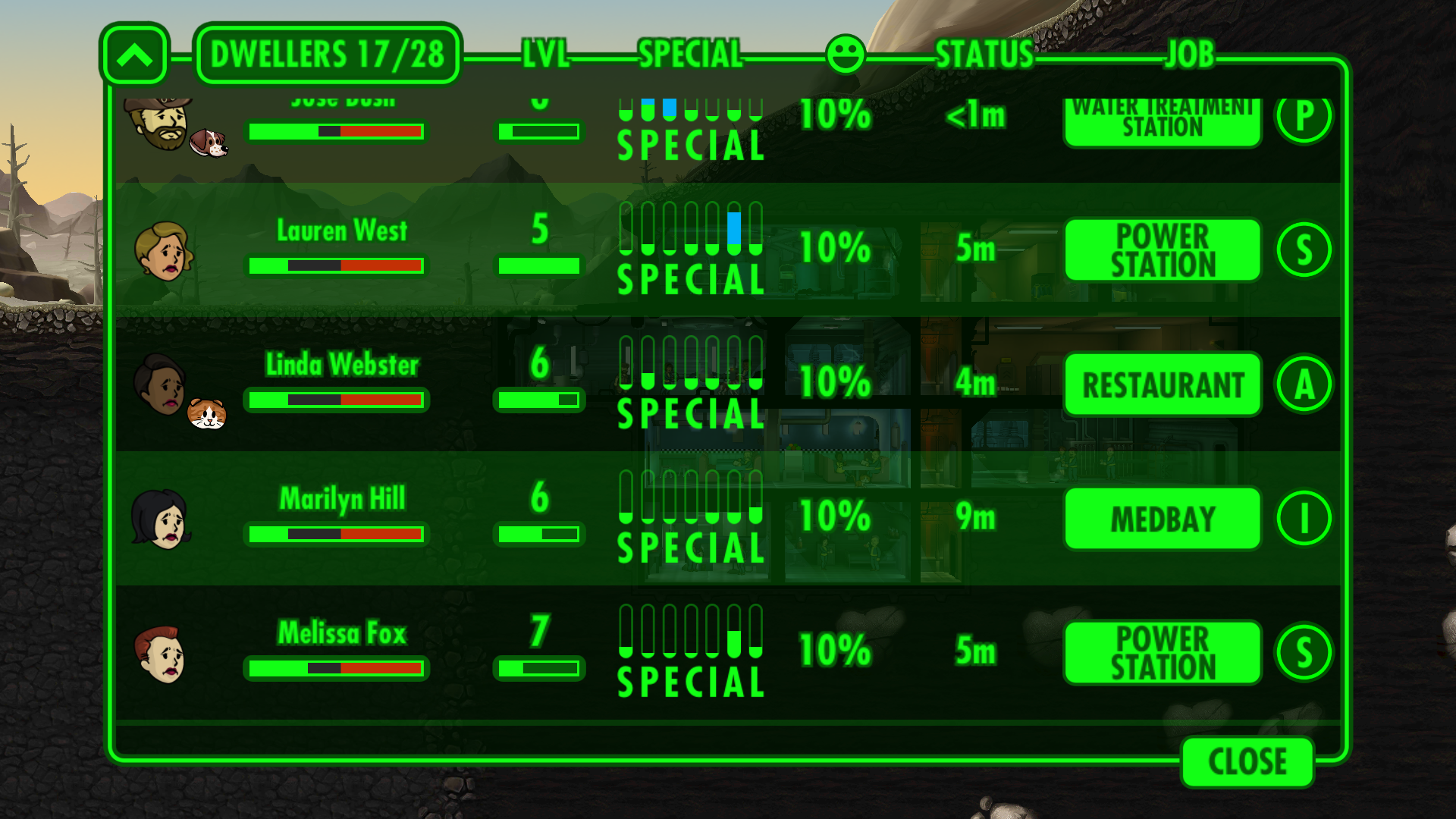 You are accepting new dwellers simply by dragging them in the vault exactly where you want them. They all have different stats, so you have to combine the workers so that the production of water, food, and electricity is as efficient as possible. When the room is full of workers, by moving the dweller into it, you automatically arrange his replacement with the worst of them. Stats are hidden under the term SPECIAL, and it took me a long time to figure out that each letter represents a stat (Strength, Perception, Endurance, Charisma, Intelligence, Agility, Luck). Who would expect it from a special? I thought they were just special.