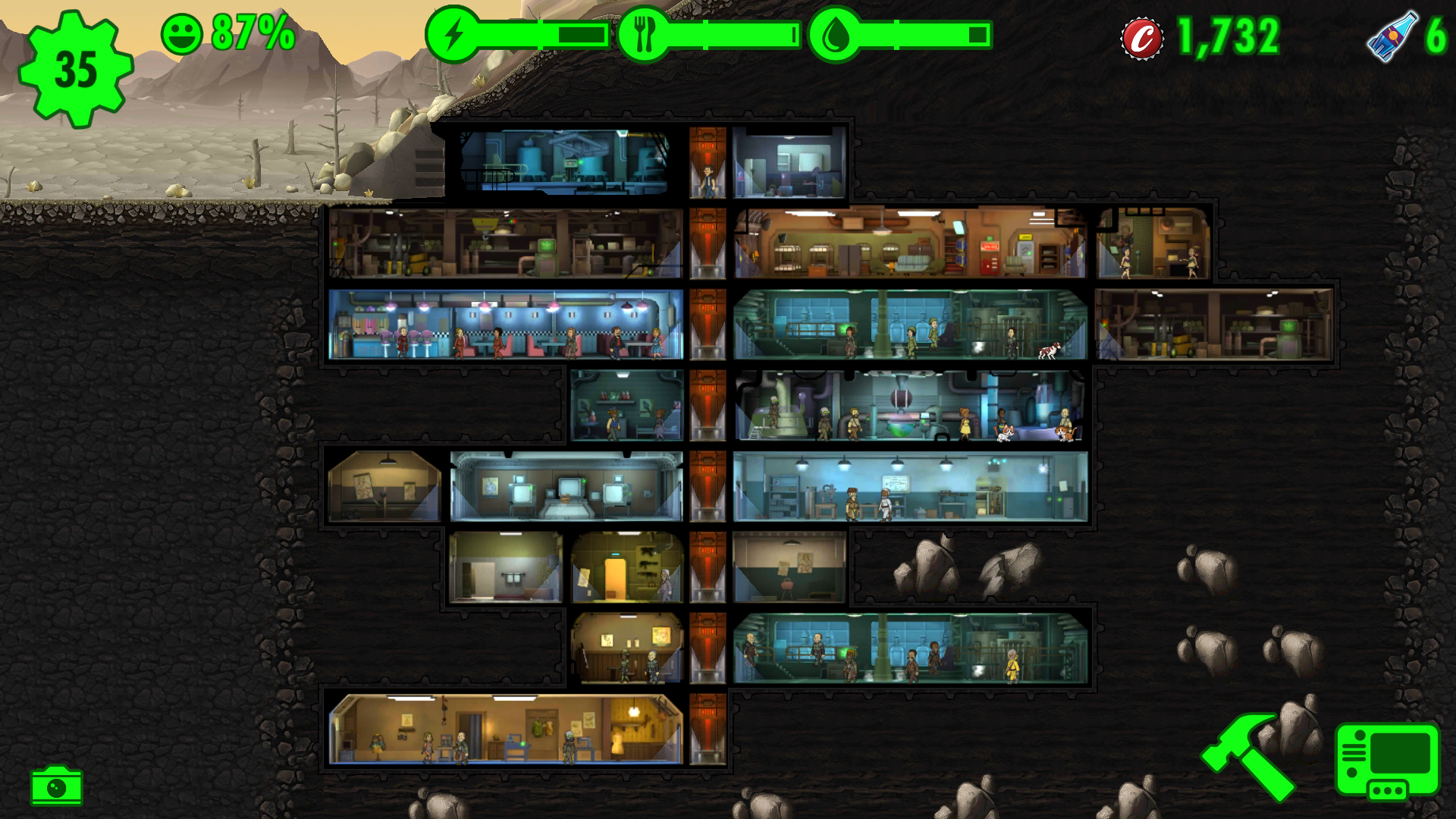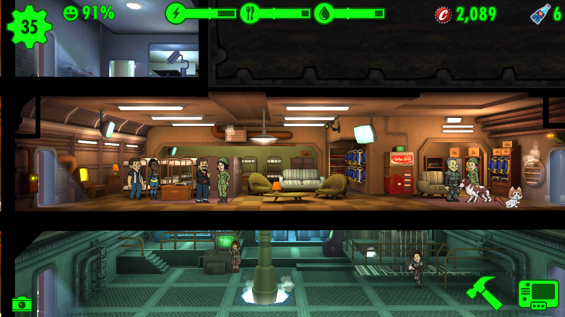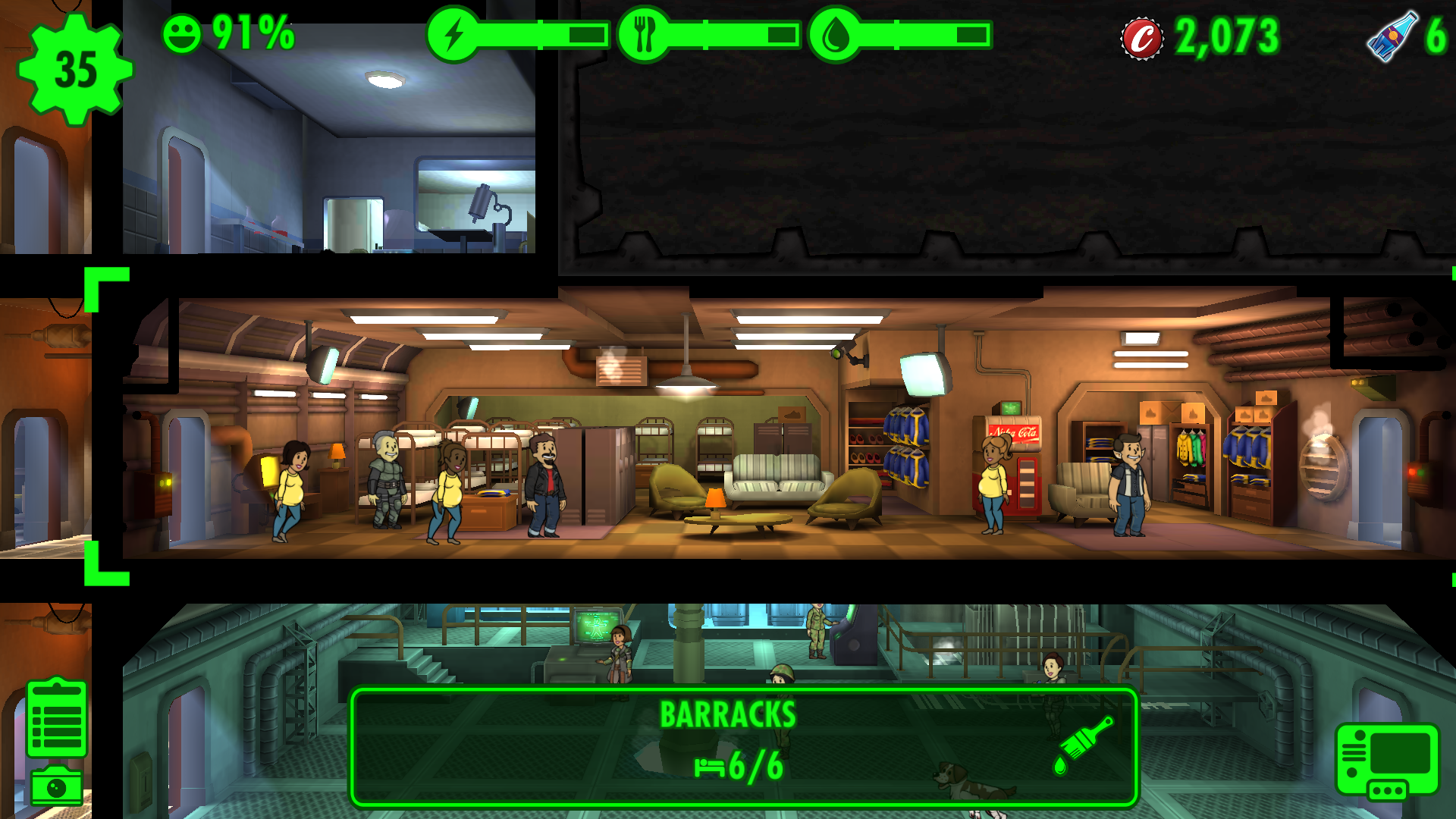As the number of dweller increases, you will gradually unlock the other rooms. Storage room for enhancing the capacity of items you can have, crafting room for the first-aid kits, radiation medicine, weapons, clothing, etc. Rooms for improving the stats of your workers and so on.