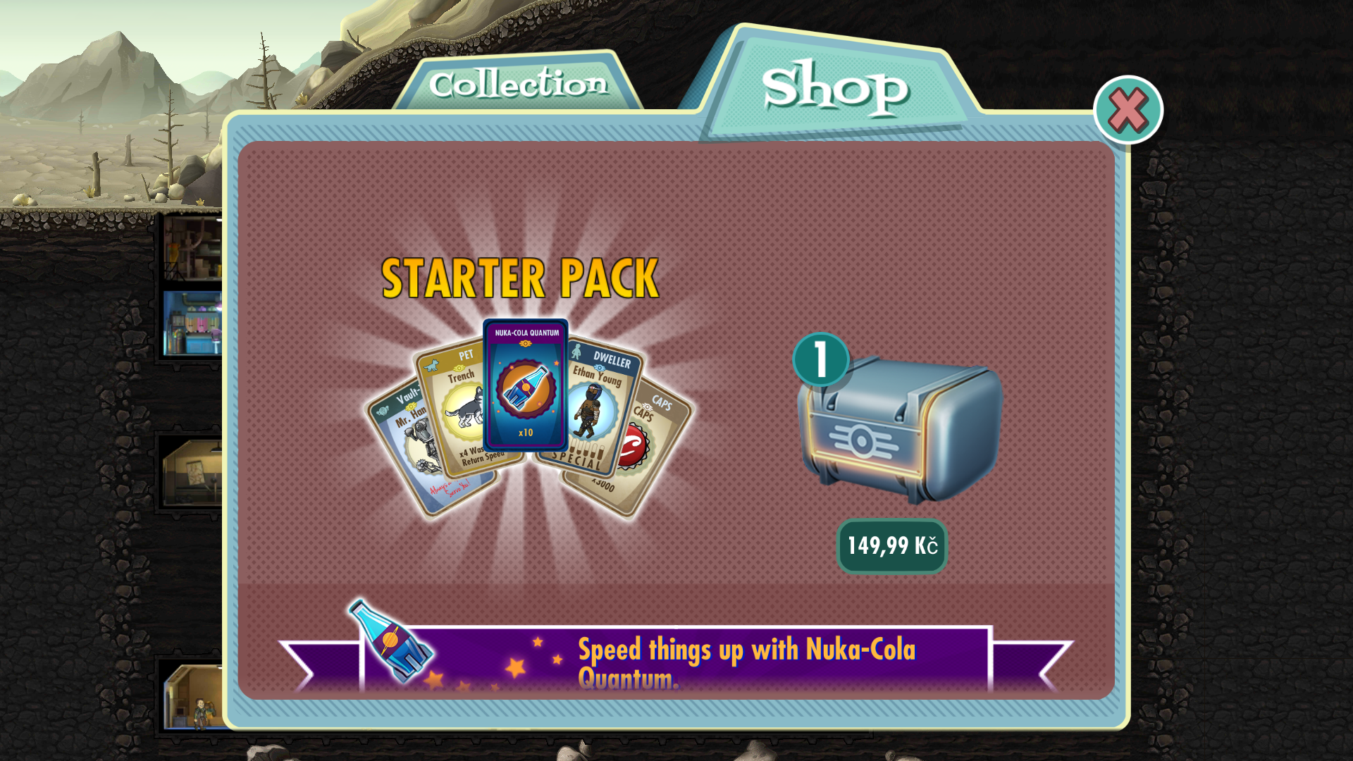 To speed up the game experience, you can buy lunchboxes with gear, pets, Nuka-Cola or Mr. Handy, your robot helper. But you can live well without it, or you can get it from quests.