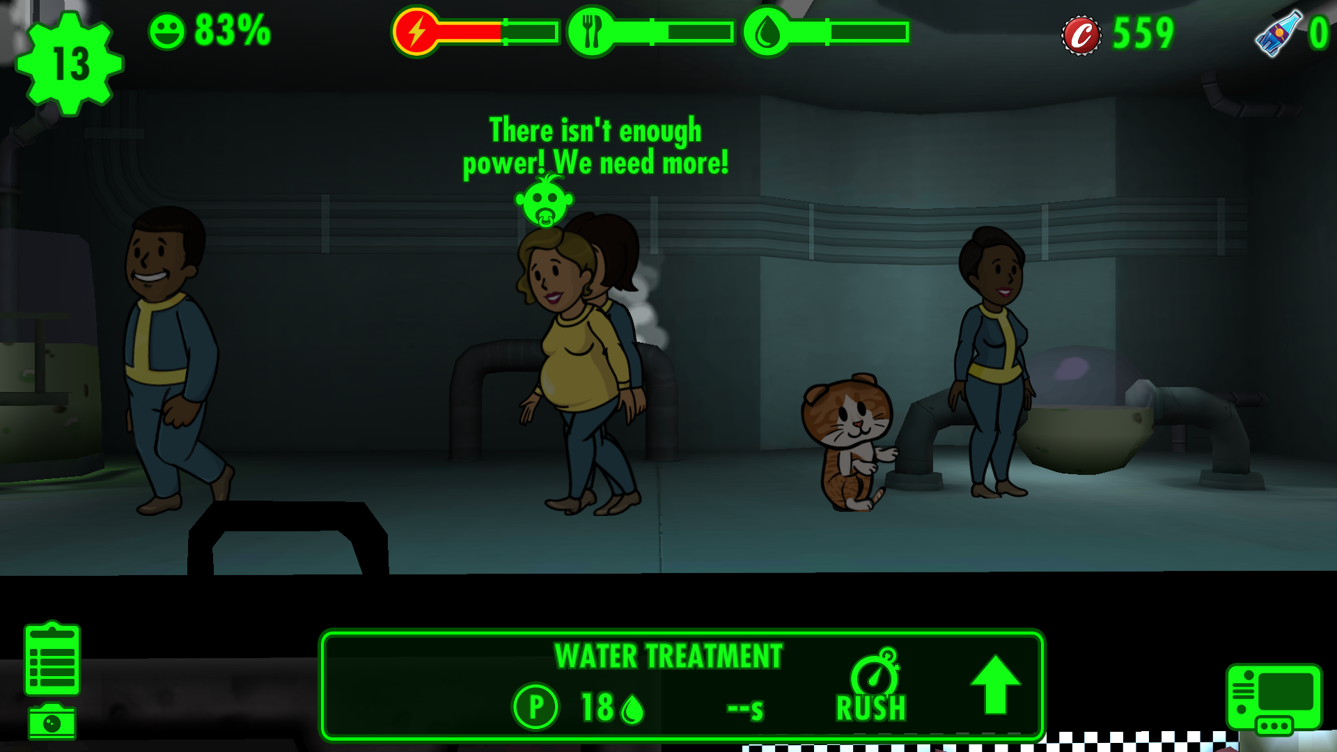I just didn't like unnecessarily long waiting in the mission, and occasionally not working move of one dweller from one room to another. If you need it the most, you won't be able to move him. They are too tiny.