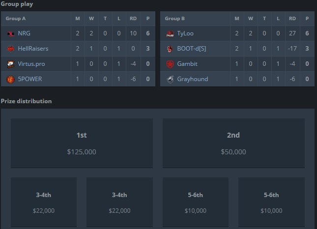 Today in e-sports news, specifically in the CS:GO realm. The Shanghai 2018 is under way. 8 teams battle it out for for a reward pool total of 250,000 dollars. Divided up accordingly.