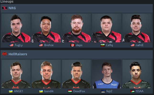 The next battle was between NRG and HellRaisers, this was a close battle for they went all 3 matches with HellRaisers for the first win,and NRG for the finial 2 match wins. The 3 maps played was Mirage, Overpass and train. Some very well known maps amoung cs:go players.