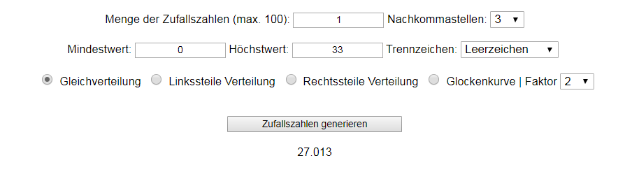 Der Gewinner wird über eine Zahl ausgelost, die zufällig generiert wird und sich zwischen 0.001 und 33 befindet.