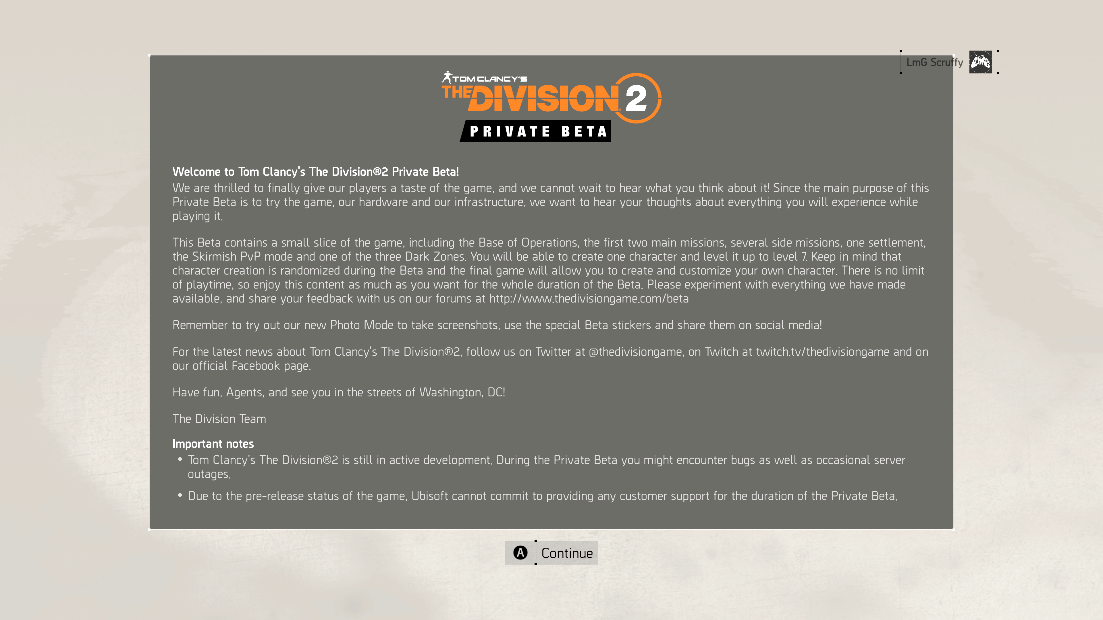 Game: The Division 2 BETA