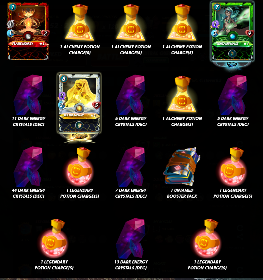 Splinterlands Daily Quest Rewardsstevespeaks (57)in #gaming • 5 years ago I like to share my rewards just to show what you can win. I also sometimes will post other stuff on this account. I got some good ones before the season ends. #splinterlands #rewards #upfundme #steemace #dblog #diamond