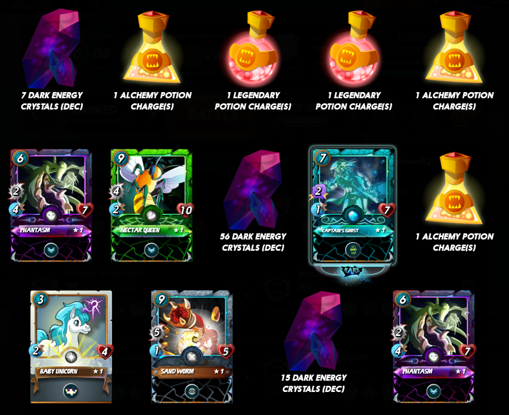 Splinterlands Daily Quest Rewardsstevespeaks (57)in #gaming • 5 years ago I like to share my rewards just to show what you can win. I also sometimes will post other stuff on this account. Nothing great today #splinterlands #rewards #upfundme #steemace #dblog #diamond
