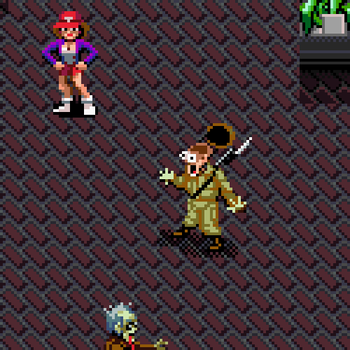 The protagonists are Zeke and Julie (who as Wikipedia says, are siblings), they are going to be your avatars across each level with the mission of saving the victims (who are totally oblivious of their current situation until the imminent death is right in front of them) of each scenery; these people are usually in places difficult to reach and don’t change location, they don’t run or move from their places (is good to warn that when they die, you will notice it by hearing a horrible scream, don’t feel bad if the scream makes you jump out of your chair).