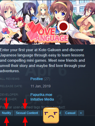 But I guess that if the game has at least one tiny bit of sexual content, they have to include that disclaimer. And you know, those tags I had highlighted before were "Popular user-defined tags for this product:" So I guess the blame is not to be put on only in fault of the developers.